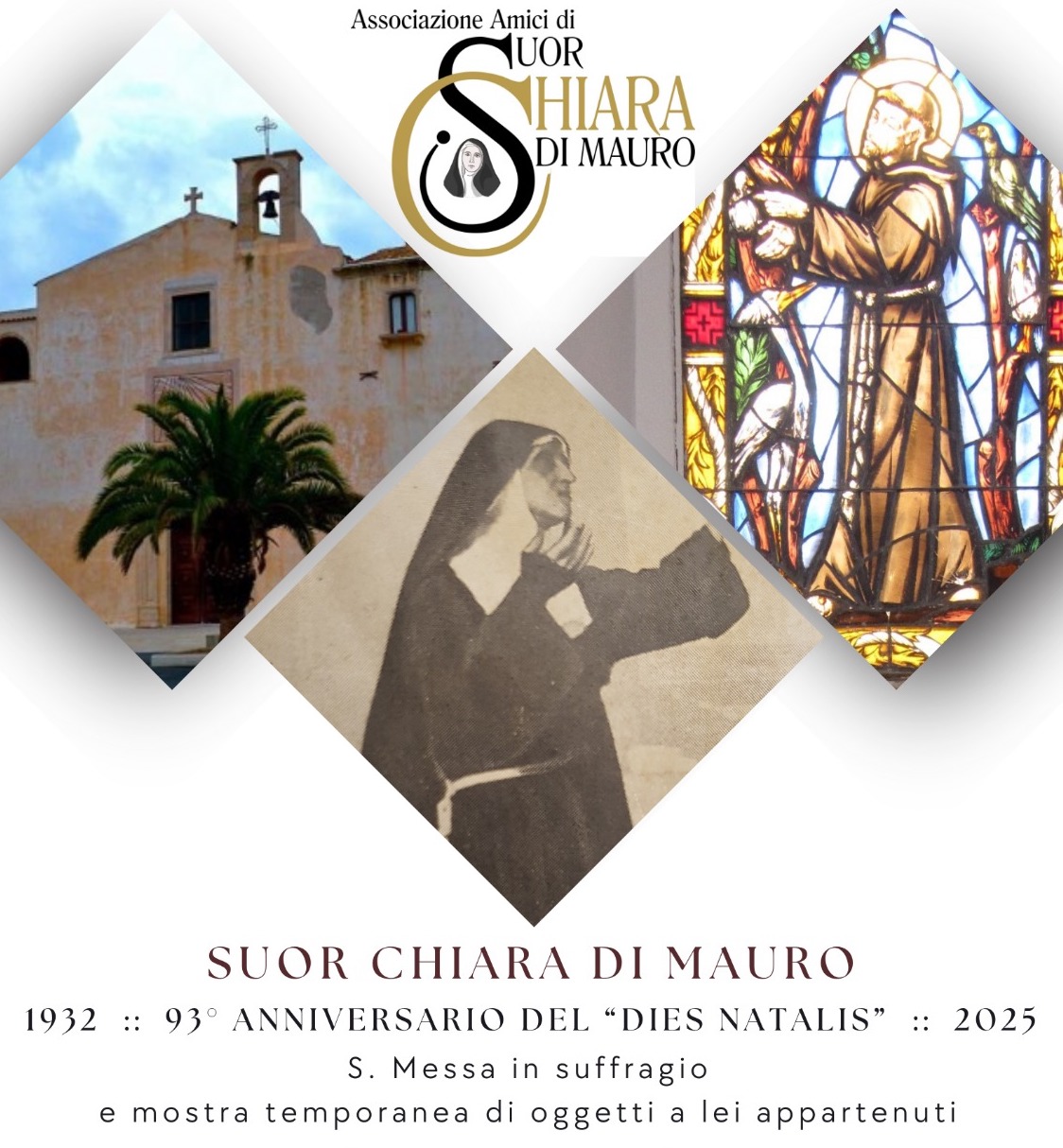 Santa messa in suffragio di Suor Chiara Di Mauro sabato 13 alle ore 19.00 nella chiesa dei Cappuccini a Siracusa. La celebrazione nel 93esimo anniversario del “Dies Natalis” (1932-2025).