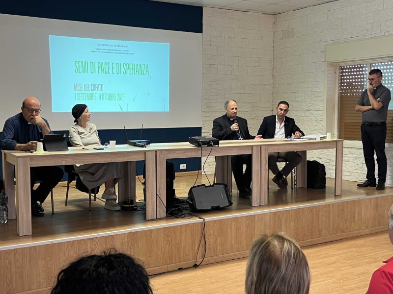 “Nel documento si sottolinea l’indole attuale del cammino della Chiesa, che non si ferma ad un insegnamento ma ad una dottrina. La Chiesa non lancia delle idee, degli orientamenti semplicemente etici, ma scende nei particolari – ha detto l’arcivescovo di Siracusa, mons. Francesco Lomanto -. Il documento offre orientamenti precisi e puntuali, che riguardano la società di oggi: la transizione energetica, la comunità energetica. Ci aiutano a riscoprire il senso della comunità, della partecipazione e della corresponsabilità. Infine una rivoluzione etica e culturale che deve interessarci. Si deve capire, ci si deve organizzare. Ma riflettiamo, organizziamo e proviamo a metterci su questa scia perchè è fondamentale“.