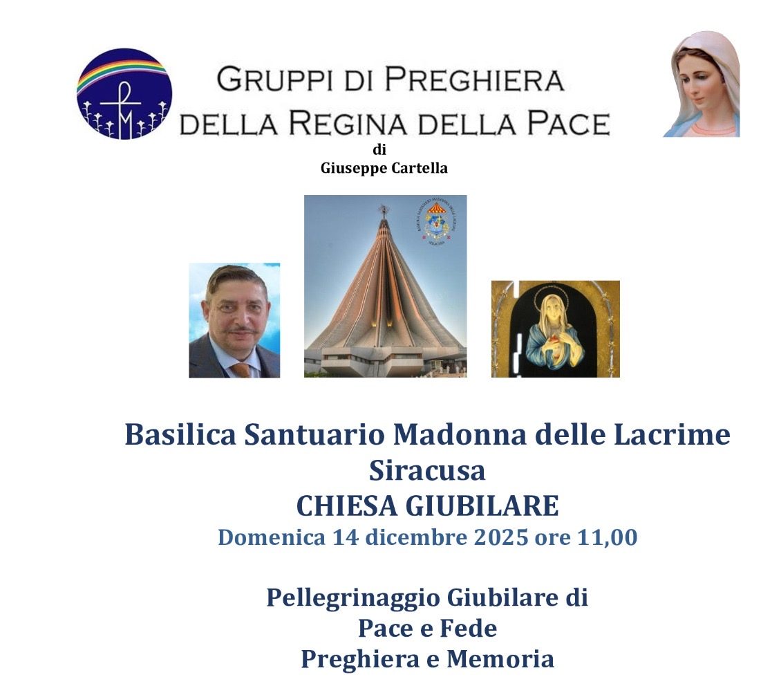 Domenica 14 dicembre la Basilica~Santuario Madonna delle Lacrime accoglierà il Pellegrinaggio Giubilare dei Gruppi di Preghiera della Regina della Pace di Giuseppe Cartella.