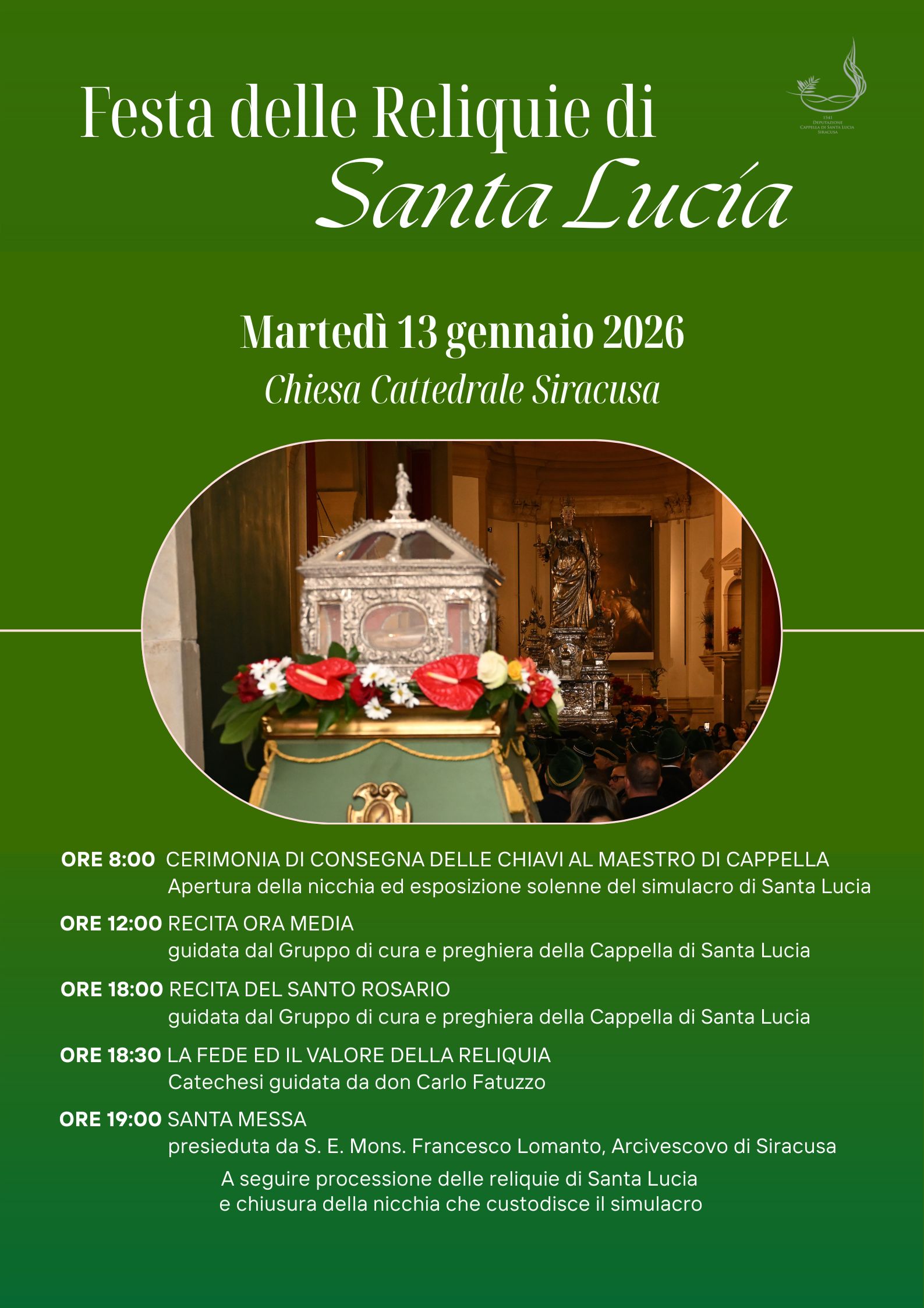 Martedì prossimo, 13 gennaio, si celebra la Festa delle Reliquie di Santa Lucia nella chiesa Cattedrale.