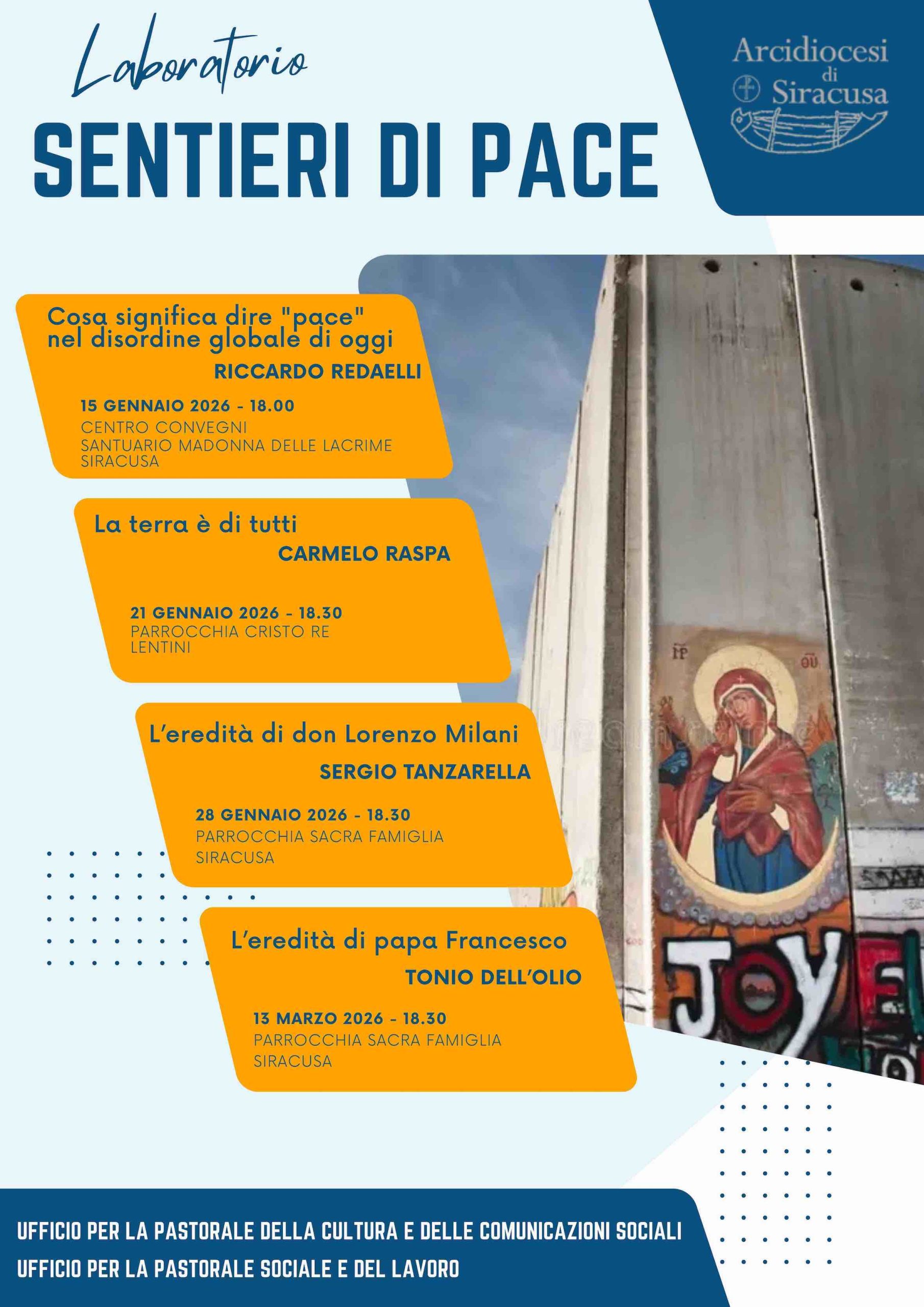 Riprende il laboratorio “Sentieri di pace” promosso dagli Uffici per la Pastorale delle Comunicazioni sociali e per la Pastorale Sociale e del Lavoro dell’Arcidiocesi di Siracusa.