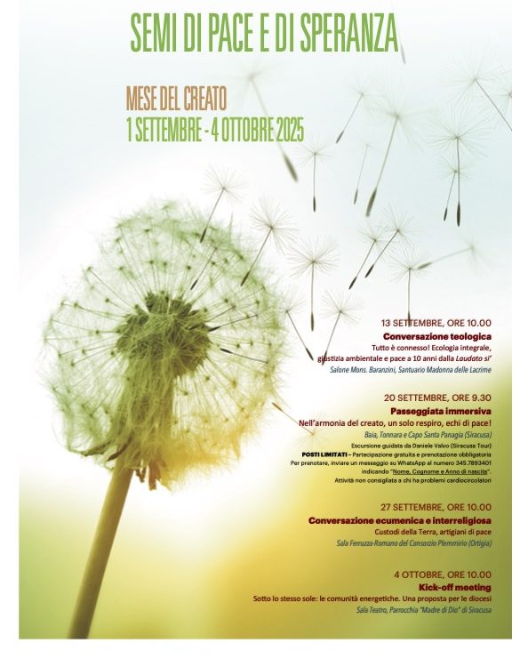 “Come più volte sottolineato dal Magistero della Chiesa – scrivono i direttori don Claudio Magro e don Santo Fortunato – , il nesso tra pace e cura del creato è strettissimo, così come è strettissimo il nesso tra guerra e violenza da una parte e degrado della casa comune e spreco di risorse dall’altra. Nel Messaggio della X Giornata Mondiale di Preghiera per la Cura del Creato “Semi di Pace e di Speranza”, Papa Leone XIV esorta tutti a pregare intensamente affinché si creino opportune e utili condizioni per una pace duratura, da costruire insieme, che susciti speranza luminosa e autentica“. Quest’anno ricorre anche il 10° anniversario della pubblicazione della Lettera Enciclica “Laudato si’” di Papa Francesco sulla cura della Casa comune.